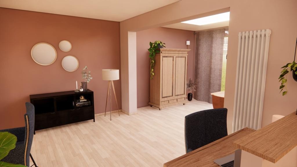 Hun wens was meer kleur en sfeer. Mevrouw was dol op roze tinten in combinatie met aardetinten. Voor meneer moest er een werkplek gerealiseerd worden en dan het liefst op een overzichtelijke plek. Sommige meubels zoals de grote kast, boekenkast, bank en fauteuils wilden ze behouden, en verder mocht alles nieuw!