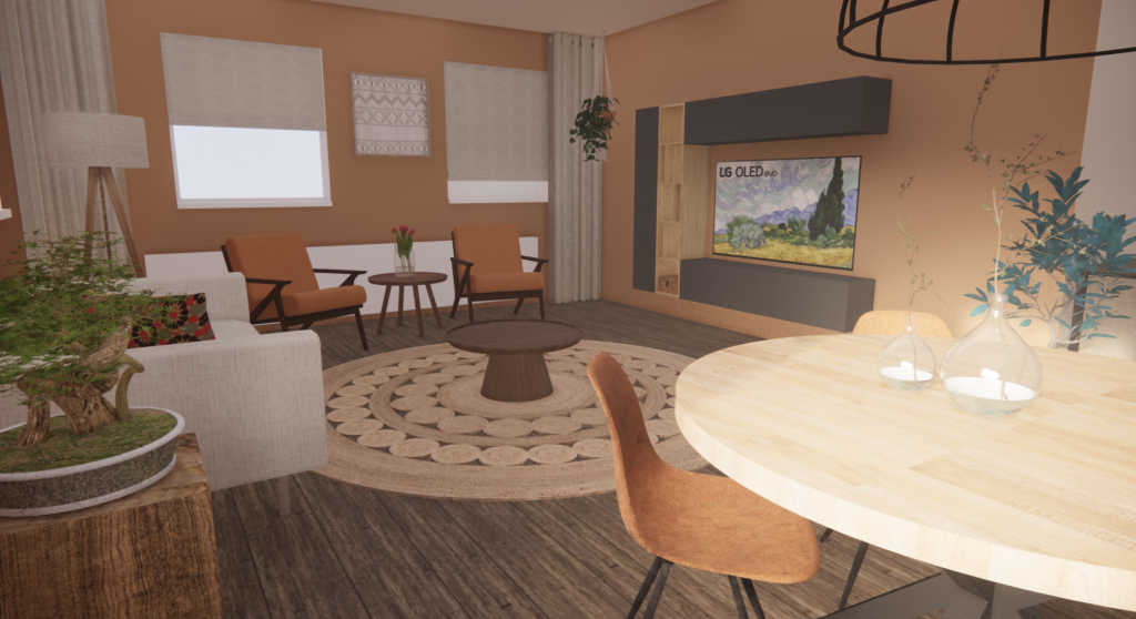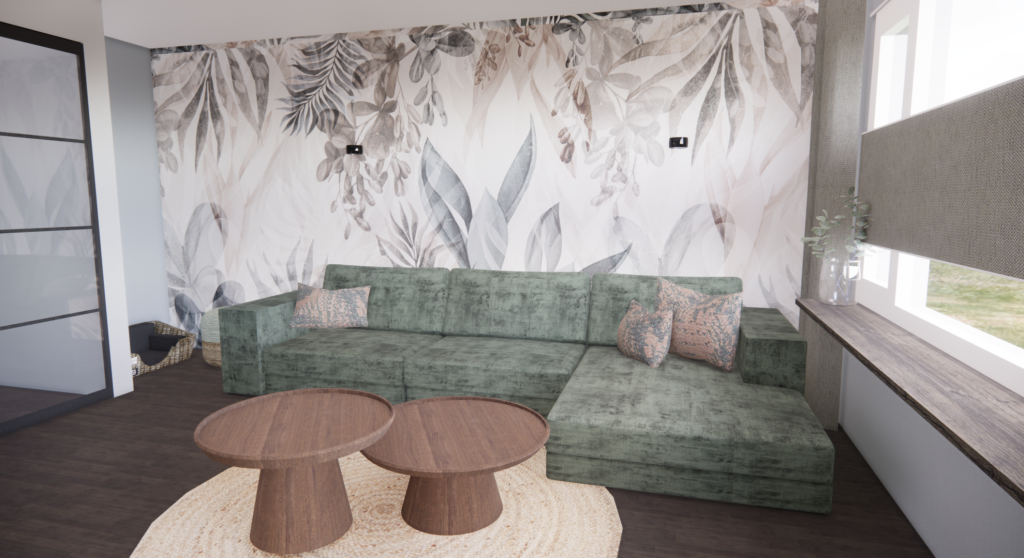 Onderstaande beelden zijn van een klant met een relatief kleine woonkamer. Ze vonden het moeilijk hoe ze het in moesten richten vanwege de kleinere kamer.