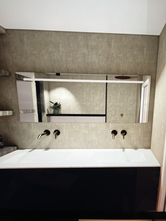 Onderstaande beelden zijn van een klant waarvoor ik de gehele bovenverdieping opnieuw mocht indelen en inrichten. Het ging dan om een geheel ontwerp voor de badkamer, kantoor en slaapkamer met inloopkast. Hij wenste graag een stoer, maar toch gezellig interieur met hout en staal. De badkamer was met de relatief kleine afmetingen een hele uitdaging, omdat er zowel een ligbad als douche in moest komen.