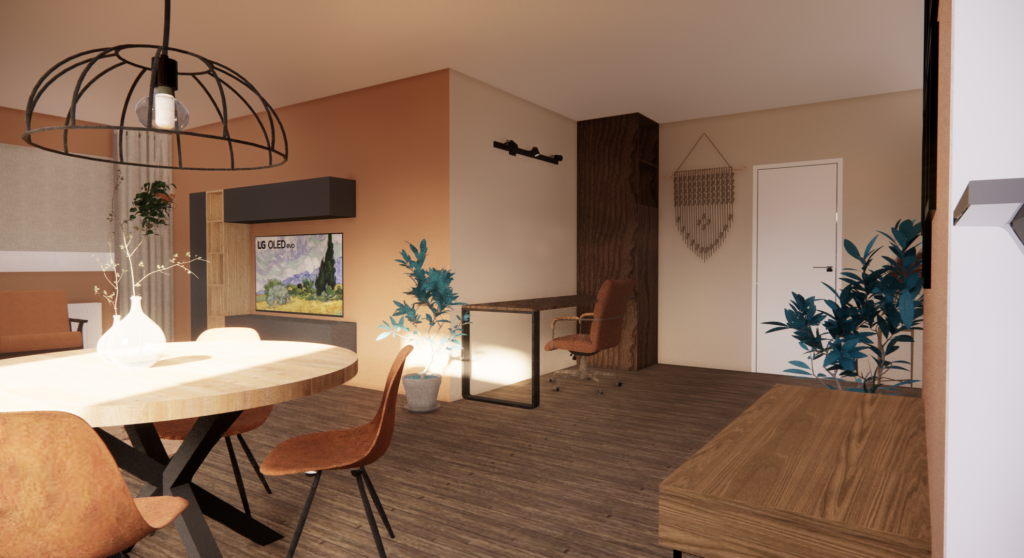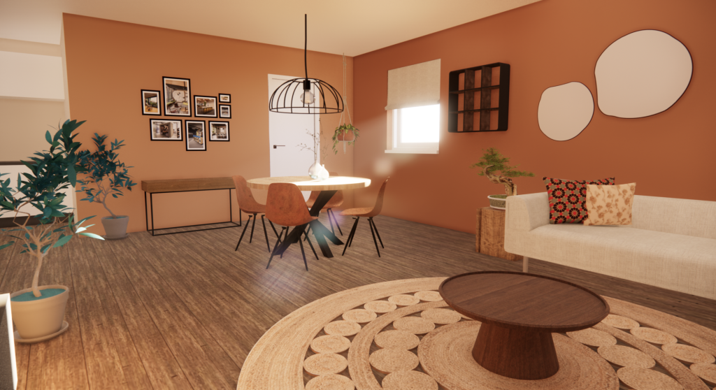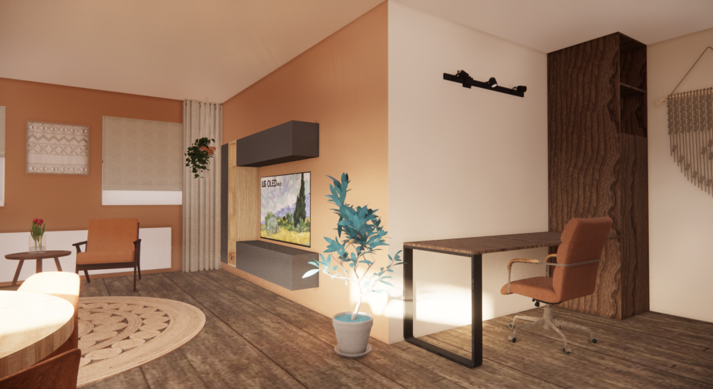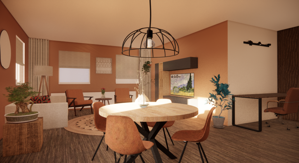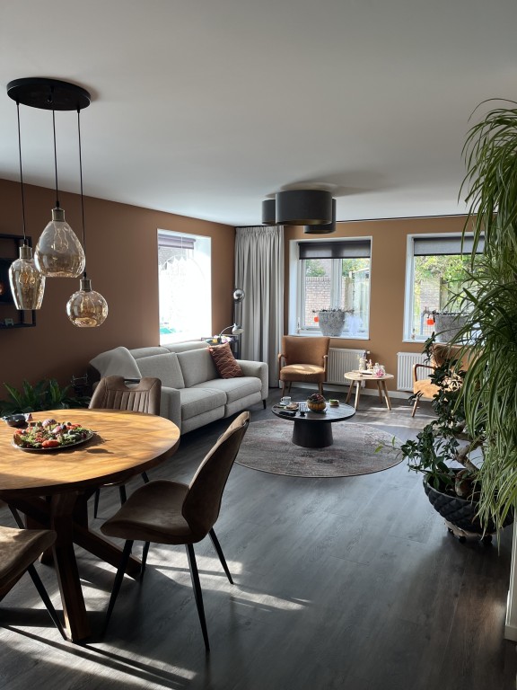 Ze miste warmte, kleur en gezelligheid in haar huis, en ook wilde ze graag een fijne plek voor haar grote hobby: knutselen. Alle meubels mochten nieuw, en ze wilde graag verrast worden met veel kleur, en dan met name: Terracotta, haar lievelingskleur!